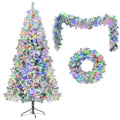6FT Snow Flocked Christmas Tree, Pre-Lit Set with Tree & Garland &
